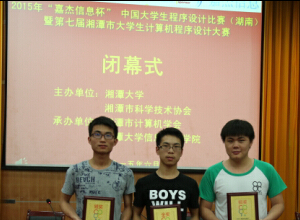 (唐源)6月5日至6月7日,2015“嘉杰信息杯”全国老员工程序设计比赛在湘潭大学隆重举行。来自信息科学与工程学院的3支队伍代表威廉希尔中文官方网站校参加了本次比赛。经过五小时的奋力拼搏,公司代表队分别斩获金、银、铜奖各一项。这是公司首次在程序设计全国类赛事上获得金奖。