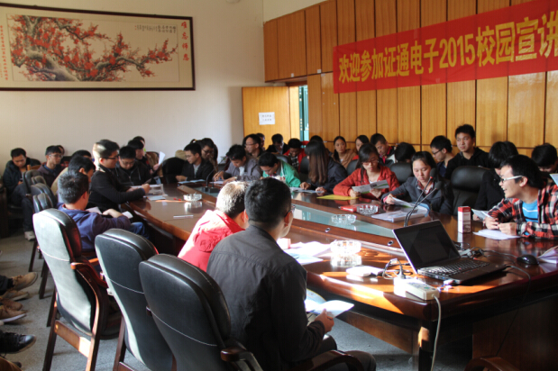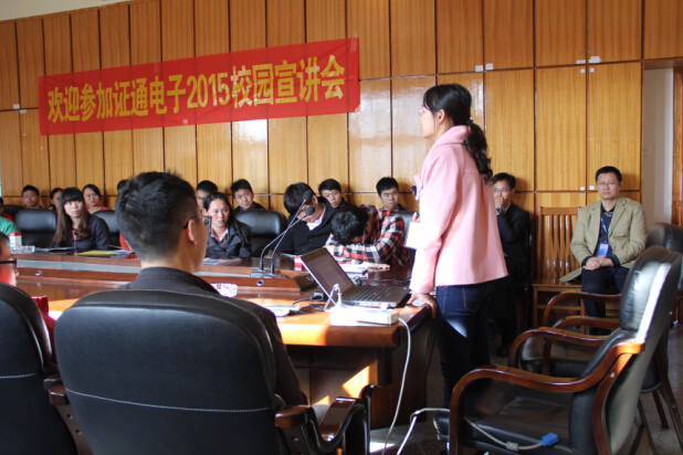 当前位置: 公司首页 >> 正文 深圳证通电子科技有限公司来公司开展招聘宣讲 时间:2014年11月17日 00:00 点击:[]来源:威廉希尔中文官方网站xgb 2015年11月14日中午2点,深圳证通电子科技有限公司来公司开展2015届毕业生招聘宣讲活动,15日上午9点,该公司组织毕业生进行了笔试和面试,最终公司14名毕业生与该公司达成就业协议。 一、宣讲会外场 二、公司老总宣讲 三、公司老总介绍公司情况 五、公司老总介绍公司情况 六、在公司任职的上届毕业生介绍情况 七:毕业生看资料 上一条:公司员工第一支部召开支部大会 下一条:公司组织开展“软酷职通车•全国校园行”威廉希尔中文官方网站站活动 【关闭】