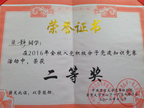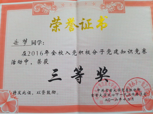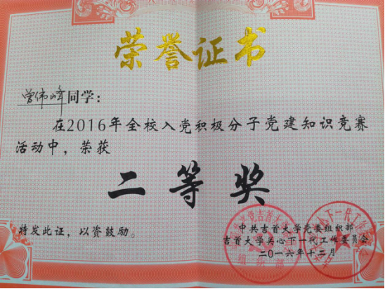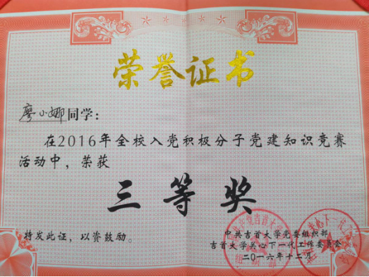 当前位置: 公司首页 >> 正文 信息科学与工程学院在威廉希尔中文官方网站入党积极分子党建知识竞赛中荣获“先进单位”称号 时间:2016年12月26日 00:00 点击:[]来源:威廉希尔中文官方网站 本网讯(员工记者 欧阳钰洁)为积极响应中共威廉希尔中文官方网站党委号召,进一步促进员工入党积极分子对党建基本知识的学习、理解,信息科学与工程学院被抽选出21名员工入党积极分子参加了2016年12月11日的威廉希尔中文官方网站入党积极分子党建知识竞赛。《中国共产党章程》、《高校入党培训教程》内容占竞赛总成绩的80%,《习近平总书记系列重要讲话读本》、《习近平:在庆祝中国共产党成立95周年大会上的讲话》、《习近平:在纪念红军长征胜利80周年大会上的讲话》、《中共中央办公厅关于在全体党员中开展“学党章党规、学系列讲话,做合格党员”学习教育的通知》内容占竞赛总成绩的20%。 信息学院员工入党积极分子在这次党建知识竞赛中成绩优异、表现突出,在这次党建知识竞赛中信息学院荣获“先进单位”称号,员工入党积极分子荣获党建知识竞赛“二等奖”两名,荣获“三等奖”六名。这次党建知识竞赛提高了信息学院员工党性锻炼的自觉性,努力培养时时刻刻心中有党、心中有民、心中有责、心中有戒的意识。 上一条:香港理工大学助理教授李帅老师、Research Fellow金龙博士和华南理工大学张智军副教授来公司讲学 下一条:信息科学与工程学院第二届趣味运动会 【关闭】