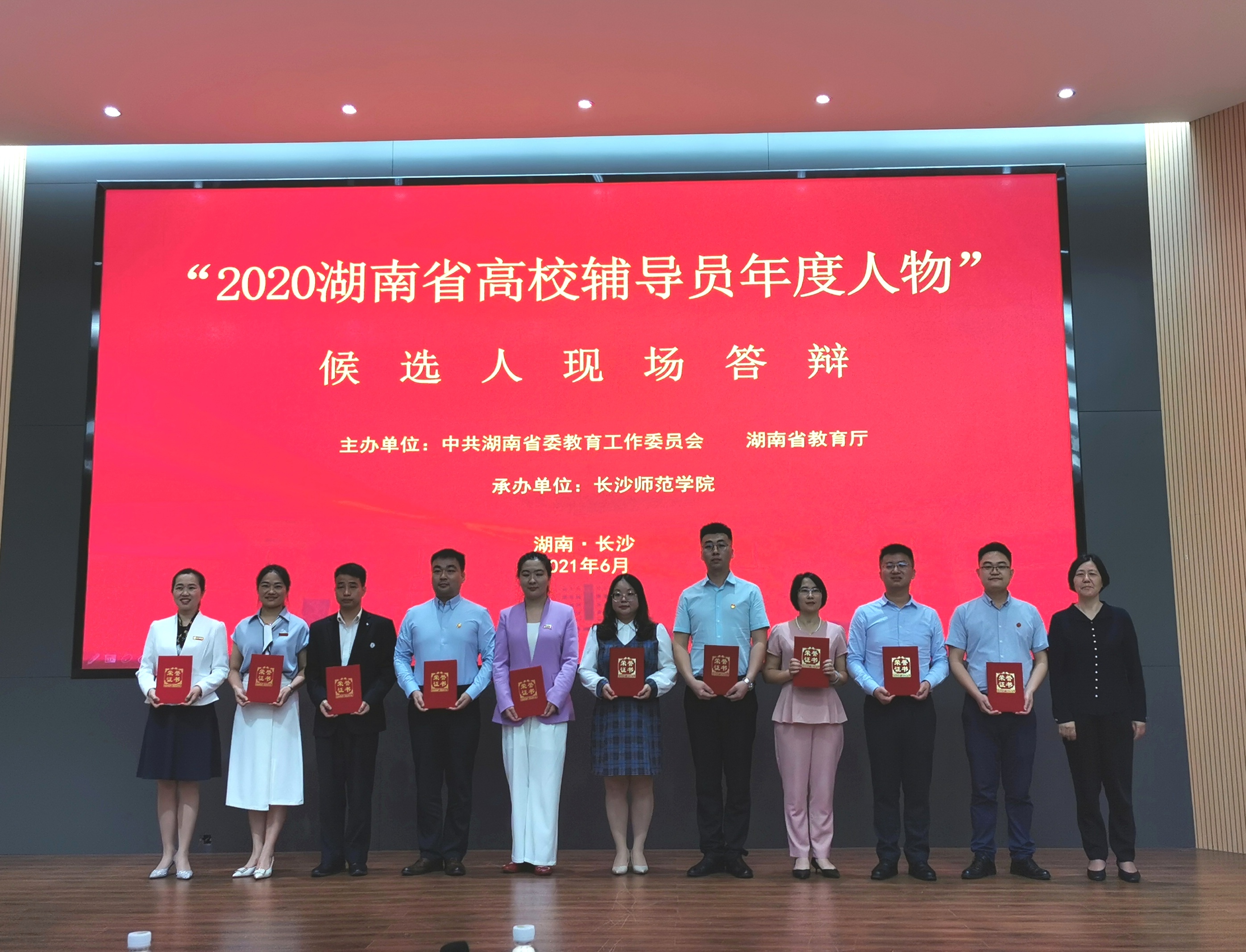 2021年6月3日,公司杨川老师作为“2020湖南省高校辅导员年度人物”的候选人在长沙师范学院参加现场答辩,最终以总分第一的优异成绩获评“2020湖南省高校辅导员年度人物”荣誉称号。